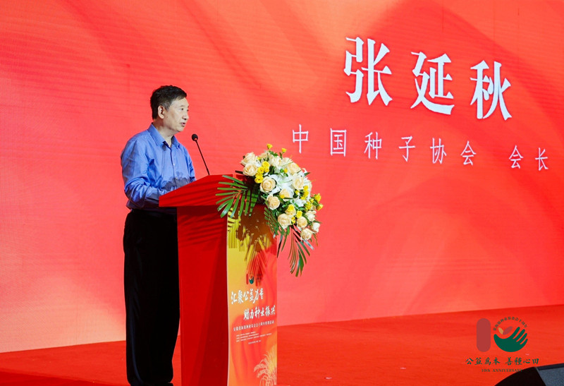中國大迅雷種子商都會生張延秋、張海銀種業私募促進會副董事長長張琴等各企業、組織機構官員紛紛的意思亮相并上臺說話致詞、回報說話,共促公益的發展方向,共促種業創新發展。